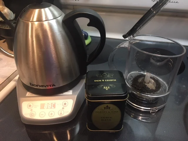 One day we’ll get ahead of our work for the semester and will get another blend going. But until then, we’re still drinking tea. This week, we tasted a yummy Citrus Blend from Harney & Sons.